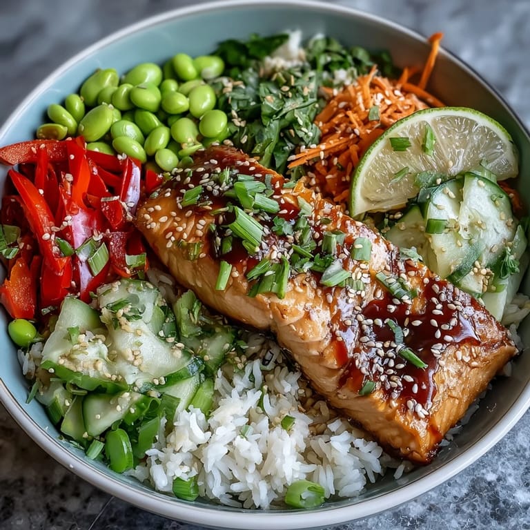 Save There's something about the sizzle of salmon hitting a hot pan that makes me feel capable in the kitchen, even on days when cooking feels like too much. I discovered this bowl on a Tuesday evening when I had salmon in the fridge and an hour to figure out dinner, which led me down a rabbit hole of combining my favorite Asian flavors into something bright and satisfying. The ginger-soy glaze came together faster than I expected, and watching it caramelize on the salmon reminded me why simple ingredients done well beat complicated recipes every time. My roommate walked in halfway through preparation, caught the aroma, and suddenly dinner became something we were both excited about rather than just another meal to get through.