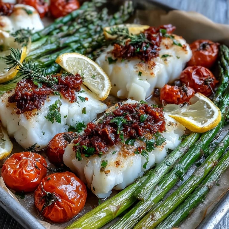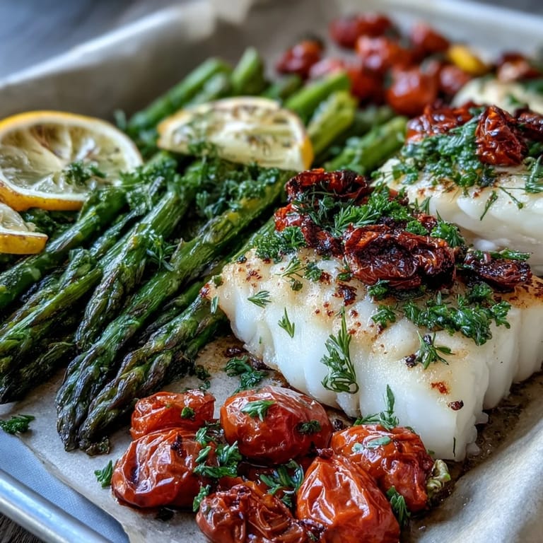 The magic here is that you're not juggling multiple pans or timing different components—everything roasts together, and the vegetables actually help keep the fish moist while they cook. The asparagus absorbs some of the lemon and herb flavors while releasing its own earthiness into the pan, and the cherry tomatoes burst slightly to create a light, natural sauce. By the time everything is done, you've got a complete, balanced meal with zero stress and minimal cleanup.