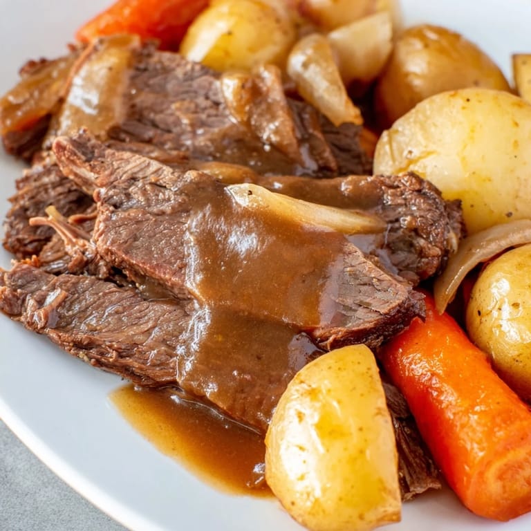 Save There's something about a pot roast that stops time in a kitchen. My grandmother used to make this on Sunday afternoons, and the smell would drift through the house by the time we arrived for dinner, announcing comfort before we even walked through the door. I learned that the secret isn't in rushing it—it's in letting the oven do the heavy lifting while you sit nearby with a cup of coffee. The first time I made it myself, I was nervous about whether three hours was too long, but the moment I lifted that lid and saw the beef practically dissolving at the touch of a fork, I understood why she never worried.