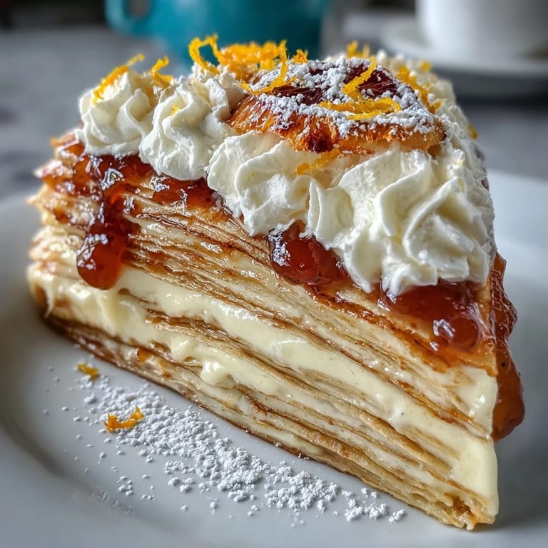 Save I bought a carton of blood oranges on a whim one February morning, drawn in by their deep magenta flesh. After juicing half of them, I had this tart, jewel-toned curd sitting in my fridge and a stack of store-bought crêpes I'd grabbed for weekend breakfasts. Stacking them together felt less like following a recipe and more like building something beautiful out of convenience. The result was so unexpectedly elegant that I served it at a dinner party that same week, and no one believed I hadn't spent all day in the kitchen.