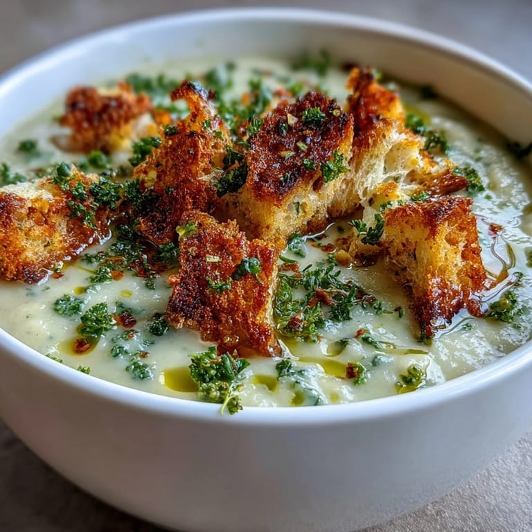 Save There was a Tuesday last winter when the fridge looked bare except for a forgotten head of cauliflower and some broccoli that needed using. I tossed them into a pot with whatever vegetables I had rolling around in the crisper, and what came out was this velvety, comforting soup that's now on repeat in my kitchen. The homemade croutons were an afterthought, born from stale bread I almost threw away. Now I can't imagine the soup without that crispy, garlicky crunch on top.