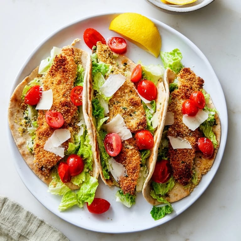 Don't over-dress the Caesar salad—just coat the leaves lightly. Place a layer of chicken at the bottom of each pita pocket before adding salad to create a barrier. Serve immediately after assembly for the best texture.