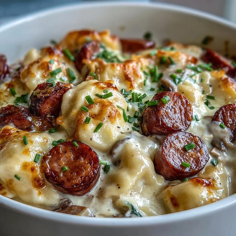 Last winter I made this for a surprise visit from cousins who arrived late and hungry in the middle of a snowstorm. The kitchen was filled with the savory aroma of garlic and kielbasa just as they walked through the front door. We sat around the table laughing and eating straight from the crockpot until every bit of cheese was gone. It was one of those rare moments where everything felt perfectly simple and satisfying.