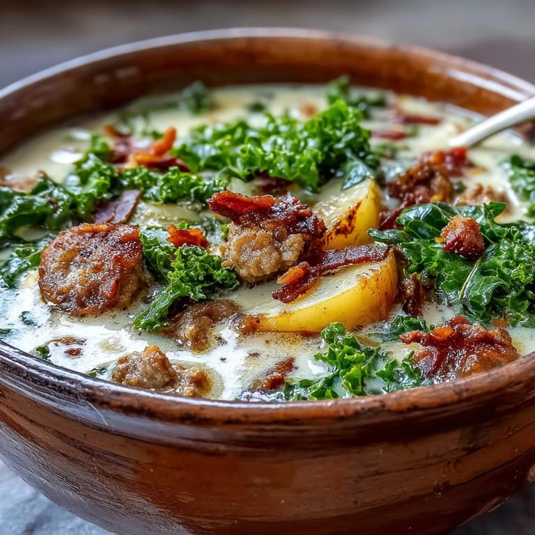 Save The smell of bacon and Italian sausage simmering together instantly takes me back to a rainy Sunday when my neighbor dropped by with a container of this soup. She had made too much, she said, but I suspected she just knew Id been having a rough week and needed something warm.