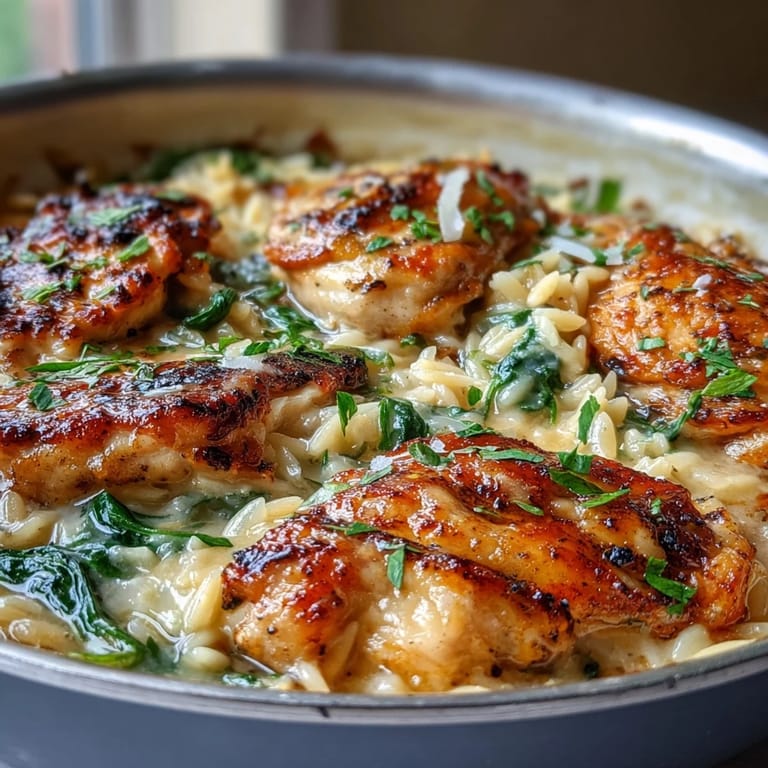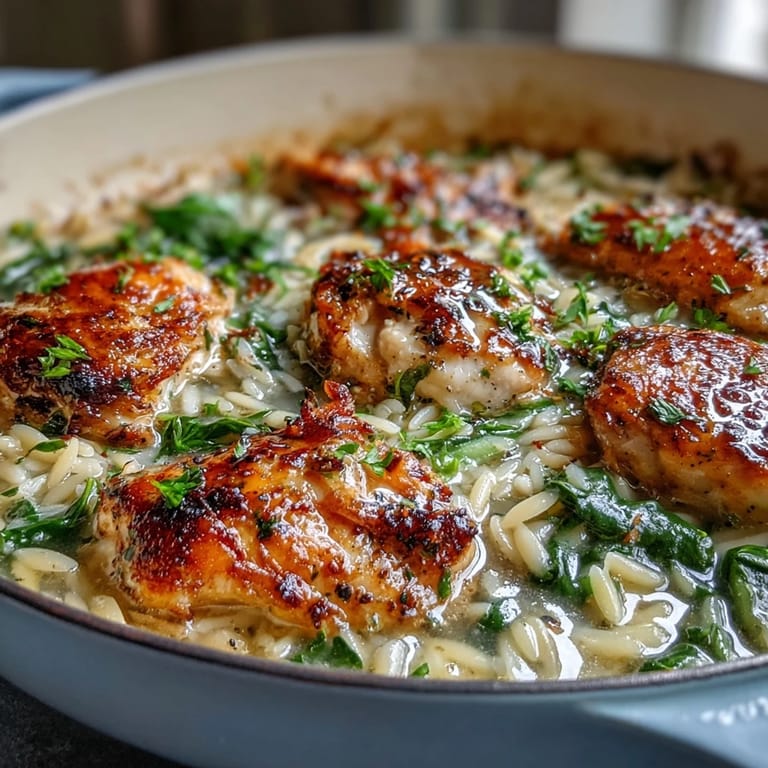 The key to this dish is getting a good sear on your chicken at the beginning, which builds a foundation of flavor. Don't crowd the pan—work in batches if necessary. When toasting the orzo, keep it moving to ensure even browning without burning. The pasta will continue absorbing liquid as it sits, so if you prefer a saucier consistency, you may want to add a splash more broth before serving.