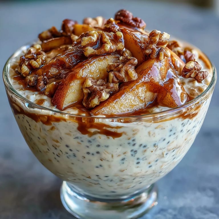 Save There's something almost meditative about assembling overnight oats the night before—you're essentially telling your future self, "I've got you tomorrow." I discovered this particular combination on a particularly hectic Tuesday when I'd overcommitted myself and needed breakfast to ask nothing of me except a spoon. The cinnamon apples turned out to be the revelation, their warmth and slight char cutting through the creamy oats in the most satisfying way.