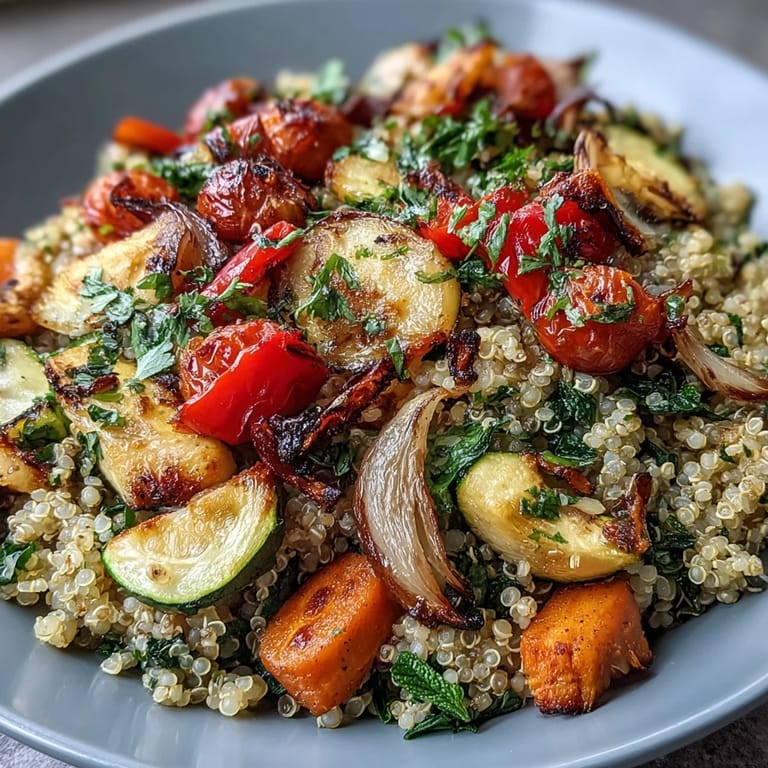 Save My kitchen smelled like roasted vegetables and cumin the afternoon I first assembled this pilaf, and I realized I'd been overcomplicating grain bowls for years. There's something almost meditative about watching quinoa steam under a lid, knowing that in fifteen minutes you'll have a canvas for whatever colorful vegetables catch your eye. This dish emerged from one of those moments when I opened the fridge and saw the tail end of summer produce—bell peppers going soft, zucchini multiplying—and decided to roast them all into something golden and warm. It became my go-to weeknight dinner almost immediately, then somehow evolved into the recipe I bring to potlucks.
