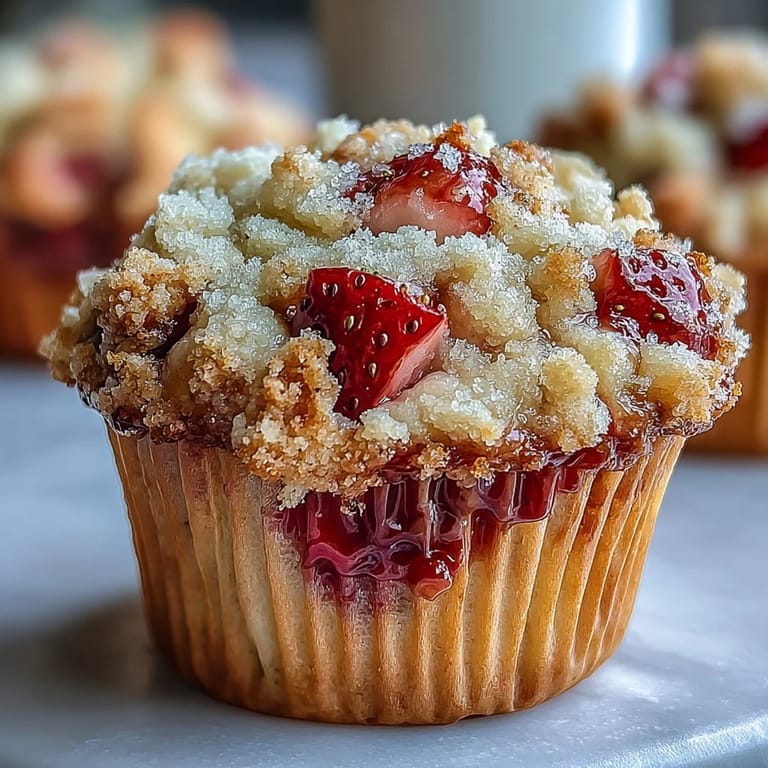Save One Saturday morning, my kitchen filled with the smell of melting butter and fresh strawberries, and I realized I'd been making the same boring muffins for years. That's when I decided to brighten things up with lemon zest and a buttery crumble topper, and the result was so good that my kids started requesting them by name instead of just grabbing whatever was in the tin. These strawberry muffins became the thing I'd bake when someone needed cheering up, or when the berries at the farmers market looked too perfect to pass by.